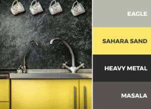إذا كنت ترغب في إضافة أجواء مبهجة إلى مطبخك، فالاِختيار الأمثل سيكون في اللون الأصفر. يمكنك اِستخدامه لطلاء الخزانة أو حتى كطلاء للجدران. ولا تنس إضافة بعض الأثاث الأسود غير اللامع لخلق التوازن.