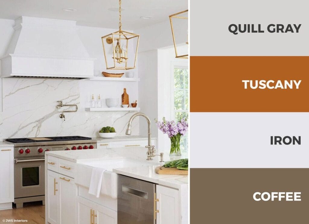 إذا كنت تميل إلى المطابخ الكلاسيك، فاللون البني المحايد مع الأبيض سيكون هو الاِختيار الأمثل. اِختر تشطيبات خشبية مكشوفة لإبراز دفء الظل البني في مطبخك. يمكنك إضافة بعض المقاعد الخشبية إلى سطح المطبخ الأبيض الخاص بك والتناوب بين اللونين لبقية الأثاث الخاص بمطبخك.