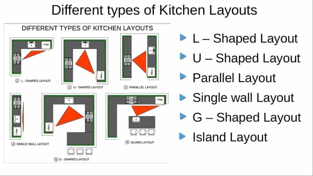 يوجد العديد من الأفكار لتوزيع أثاث المطبخ، منها: